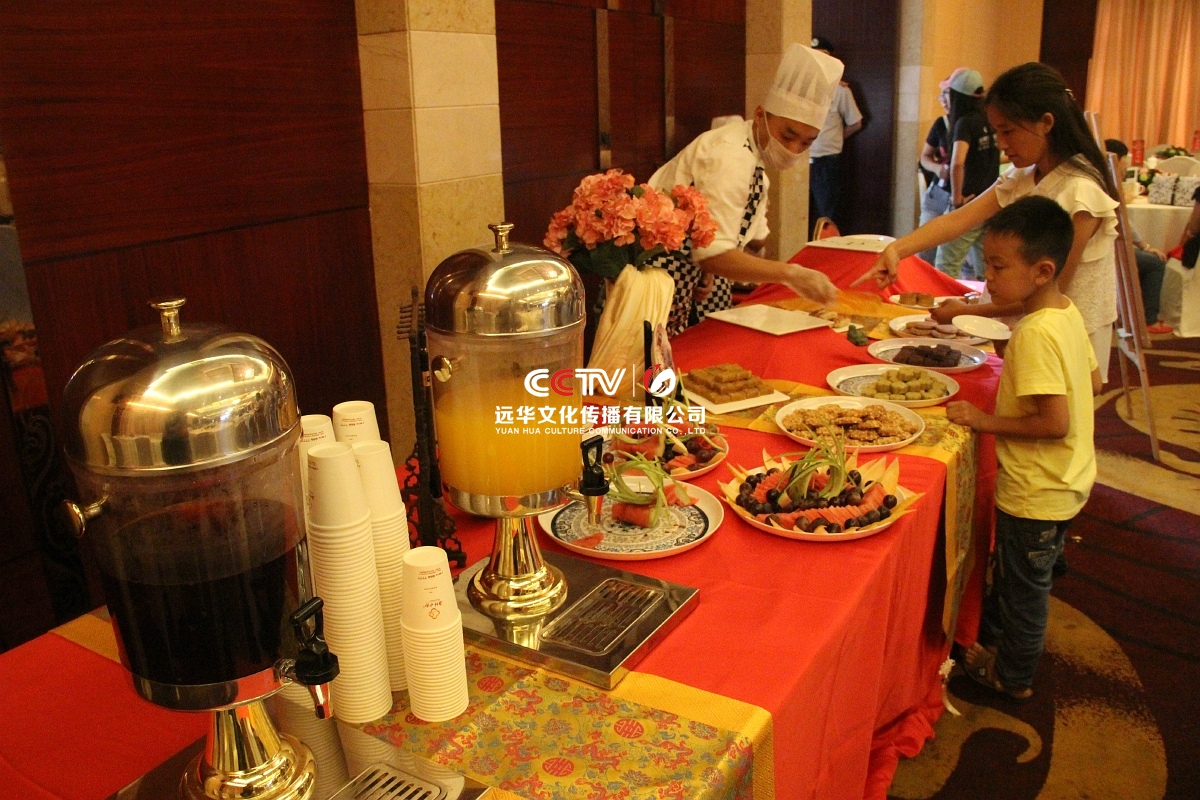 會場內提供精致的中式糕點、水果冷餐供客戶取用